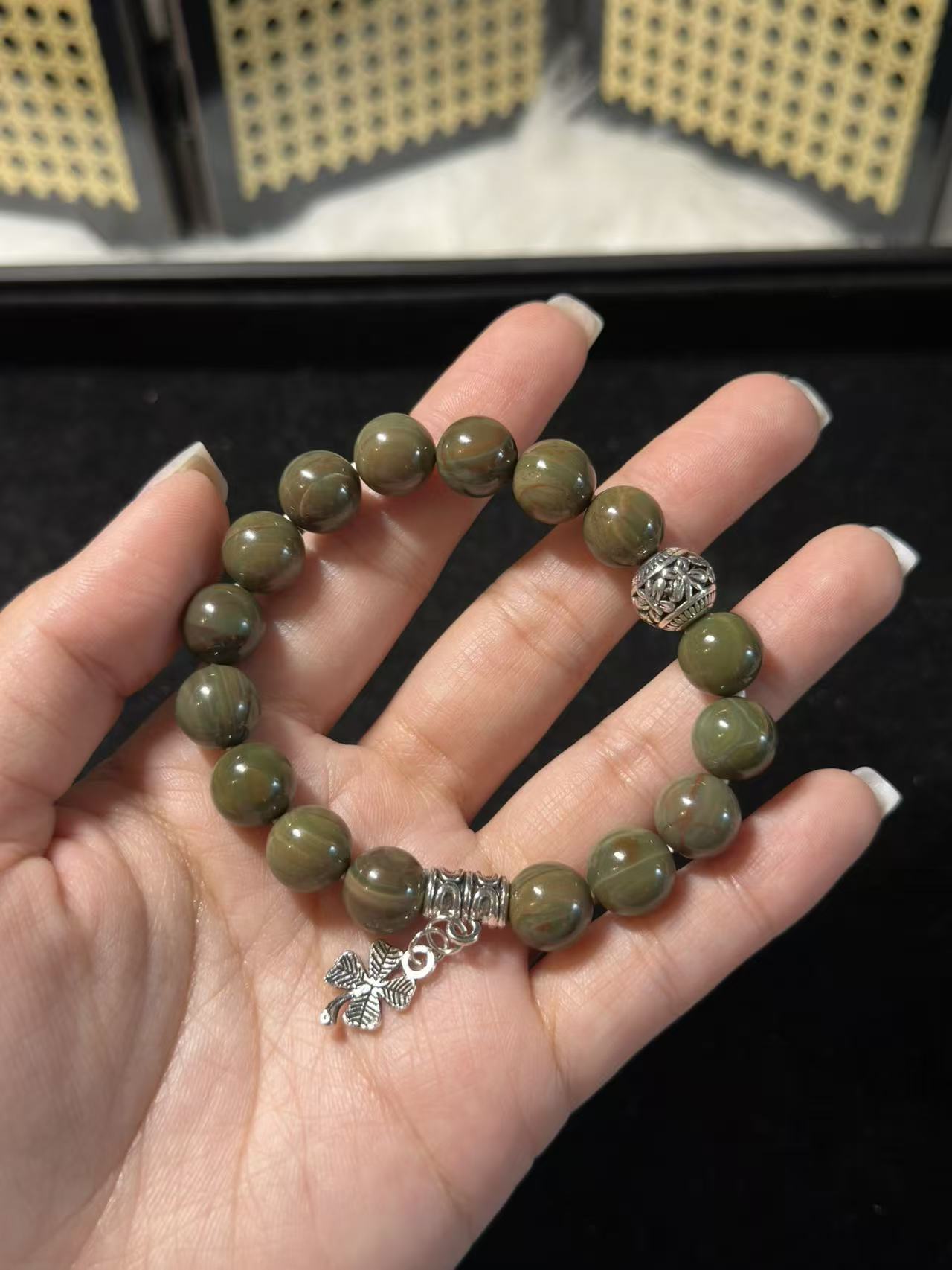 The bracelet is made of natural gemstone which is Alashan Agate. This bracelet is belonging to Old Mine Series of Alashan. In this series, the color of the bead is in dark color and the special of this material is that the color will change and look dreamy when it is under sunlight. The bead of this bracelet is almost clean and no pore. However, because the stone comes from natural material, there might be some small natural pores in 1 or 2 particles (all of this is normal). If you cannot accept these minor flaws, please do not place an order.