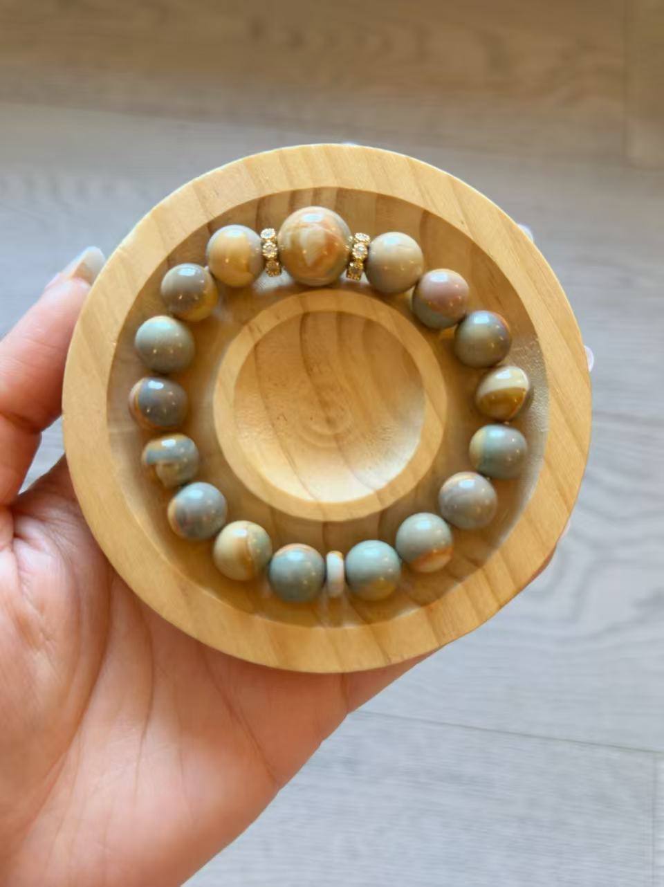 High Grade Blue Caramel Fantasy Alashan Agate Beads Handmade Bracelet | Natural Gemstone Jewelry | Gift for Her | Textured Stone