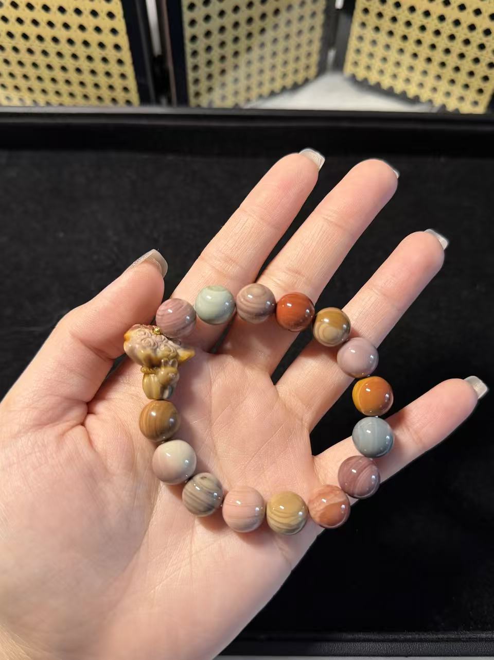 Because the stone is made from natural, so every design is unique and it is hard to have another bracelet with the same design and color. Maybe we can design it looks similar with each other but we cannot make it look exactly the same, especially the color of the stone. That's the special thing that makes me fallen in love with Alashan stone!