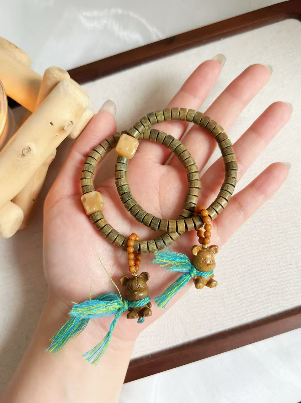 Green Sandalwood Tablet Bead Design Bracelet | Flat Bead Wood Bracelet | Handmade DIY | Inspired Aromatic Jewelry