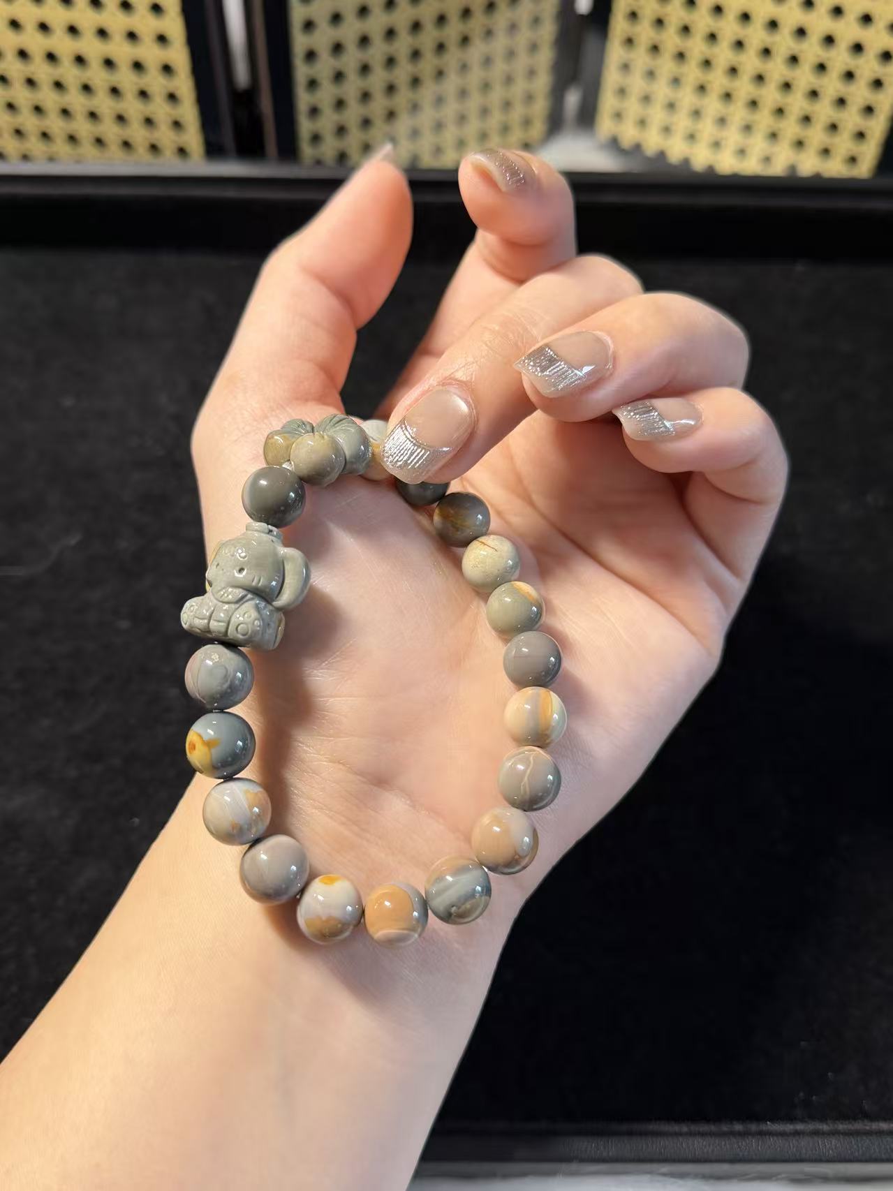 The bracelet is made of natural gemstone which is Alashan Agate. This stone is belong to Dreamy Series of Alashan Agate. This series will be affected a bit from lighting condition, it is pretty under sunlight!