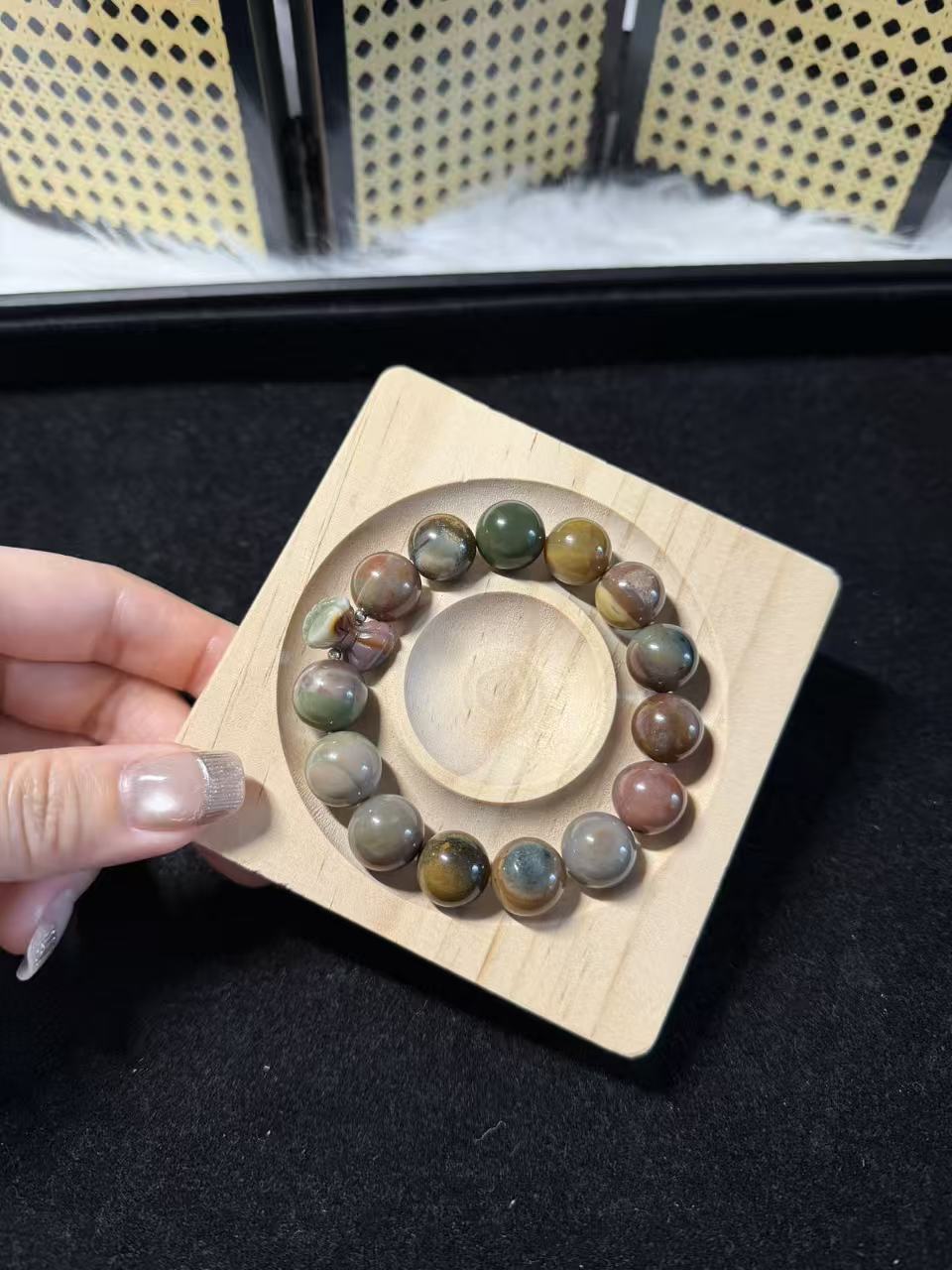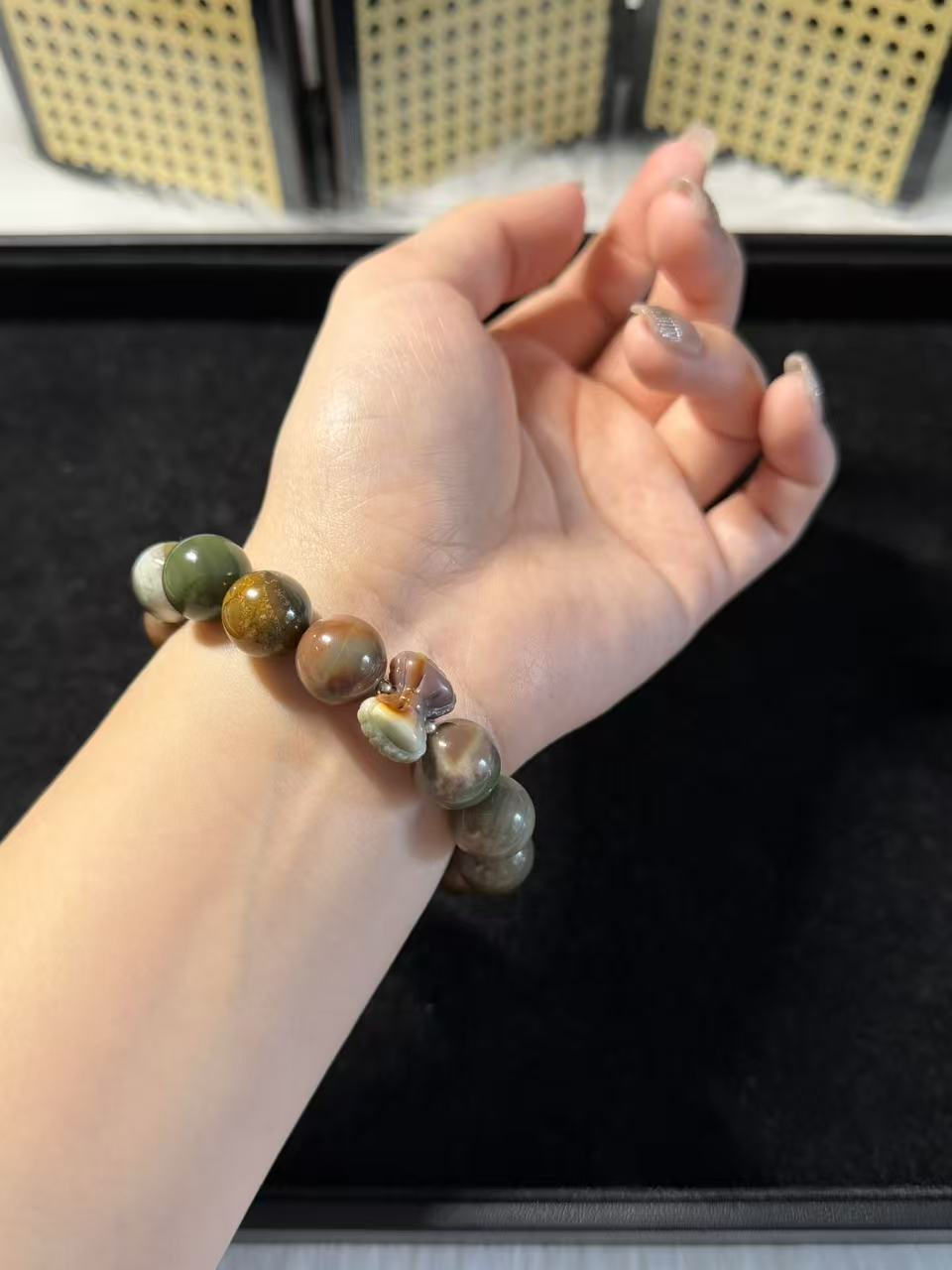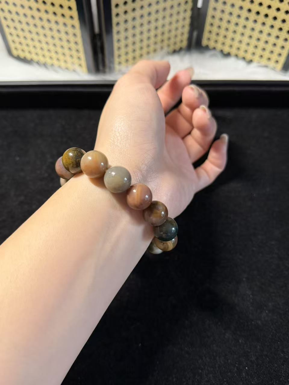 The bracelet is made of natural gemstone which is Alashan Agate. This bracelet is belonging to Old Mine Series of Alashan. In this series, the color of the bead is in dark color and the special of this material is that the color will change and look dreamy when it is under sunlight. The bead of this bracelet is almost clean and no pore. However, because the stone comes from natural material, there might be some small natural pores in 1 or 2 particles (all of this is normal). If you cannot accept these minor flaws, please do not place an order.