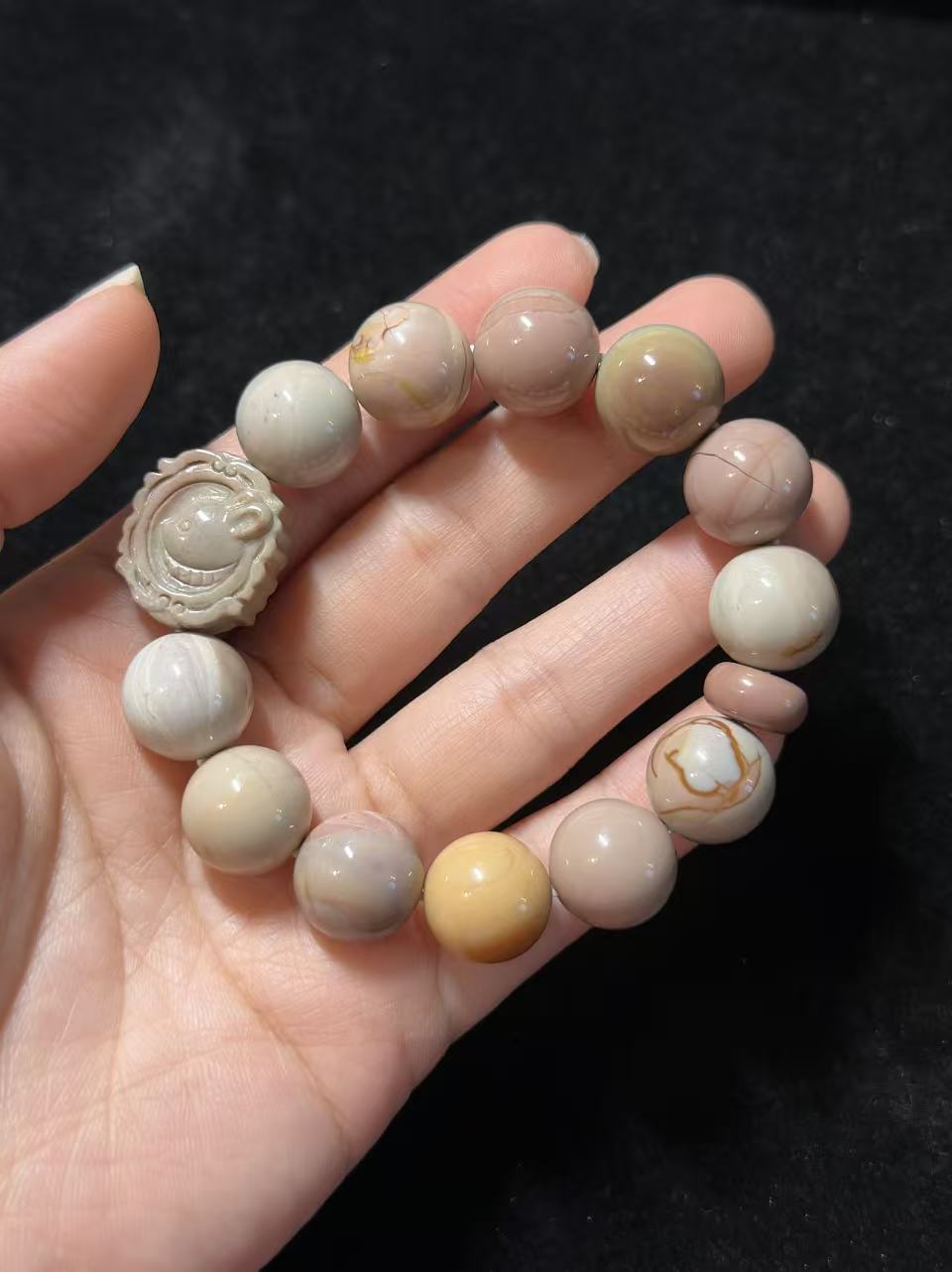 14mm Alashan Agate Beads Handmade Bracelet with Rabbit Plate Charm | Natural Gemstone Jewelry | Gift for Her | DIY | Textured Stone